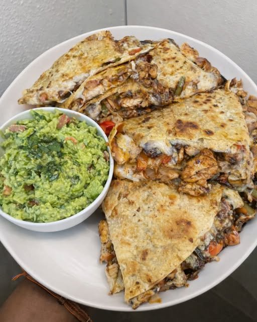 The key to this platter is the contrast between the hot, gooey interior of the quesadillas and the cold, chunky ...