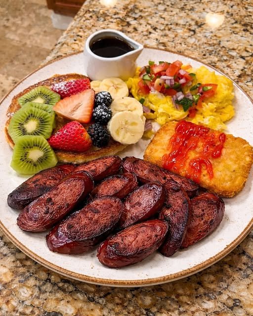The secret to this platter is the high-contrast presentation: the bright, cool colors of the fresh fruit set against the ...